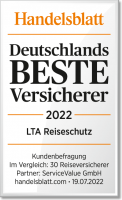 27.07.2022Het marktonderzoeksinstituut ServiceValue heeft voor het Handelsblatt opnieuw Duitslands beste dienstverleners in de verzekeringssector bepaald. LTA kon haar plaats in de top drie van het voorgaande jaar in de categorie "reisverzekeraars" bevestigen.