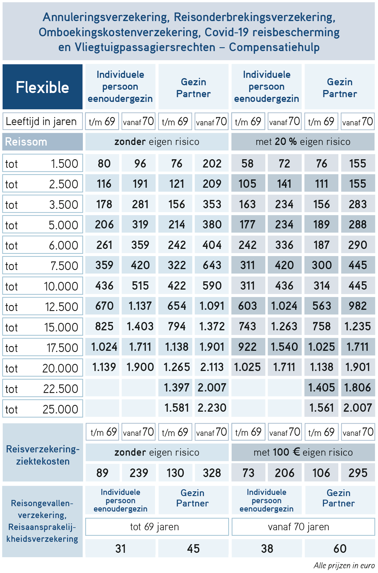 - tot 25.000 euro per reis (gezinstarief)